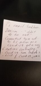 My daily routine with Lynne includes a greeting card note I write every morning and put in an envelope with six dark chocolate covered almonds