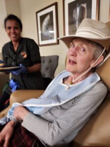 I know Lynne feels my presence. She sips water, eats treats. Her eyes rest on mine. She talks Lynnese & English to me. She laughs