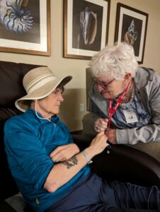 Lynne, with a wide sweep of her arms, said, “I love everybody! In the context of more verbalizations, two words came out clearly: Satan and