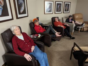 Lynne’s visitor said, “Lynne & a resident sort of cry and look at me. I found it really hard to believe in a merciful God.