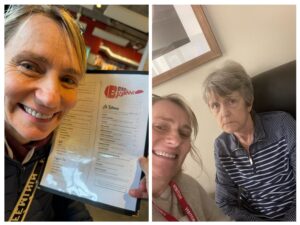 Donna & LynnR visited. She was more present & interactive than last visit. Donna gave her a latte She got sleepy & we told her