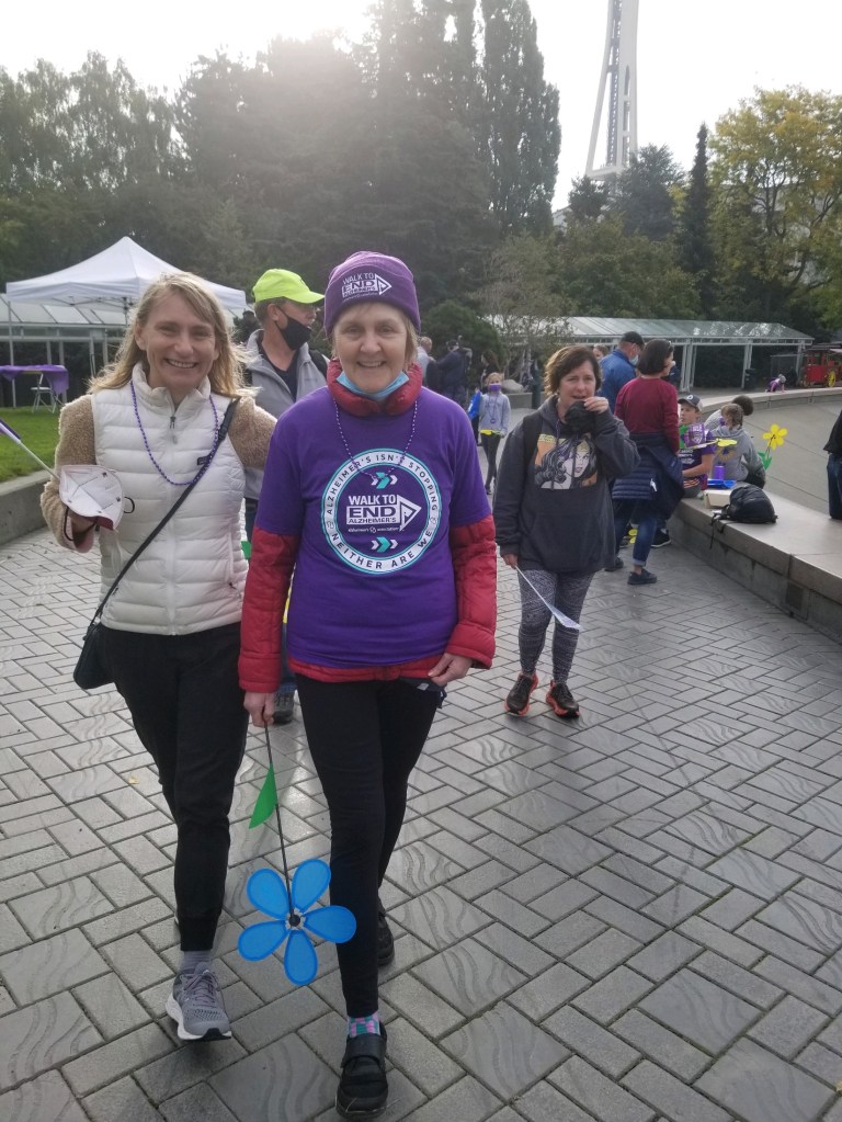 Lynne, her brother and sister-in-law, and Patti, Susan and Donna from the Microsoft posse walked for Lynne and Grammy Helen Team in the 2021 Walk to End Alzheimer’s on Saturday, October 2. As you can see, Lynne inspired us. Next year, maybe you can join us. If you’d like to donate to our team you can click on this URL to donate. https://act.alz.org/site/TR/Walk2021/WA-WashingtonState?team_id=697832&pg=team&fr_id=14864