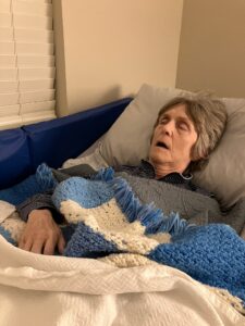 We’ve all found Lynne bedbound since her body stopped eating & drinking for 11 days. A friend said, “we’ve had peaceful times with her, gently