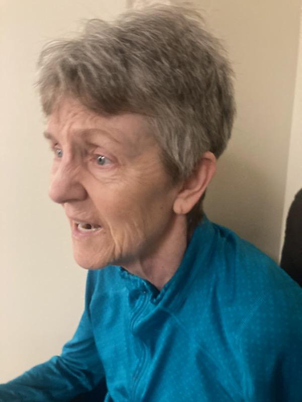 At least 8 visitors in the last 10 days gave these reports: She was her sweet welcoming self, less alert, thinner, tired, distant, & agitated. She held hands, sat up, laughed, consumed pudding & iced vanilla coffee. Let me brush her hair & rub in skin lotion.