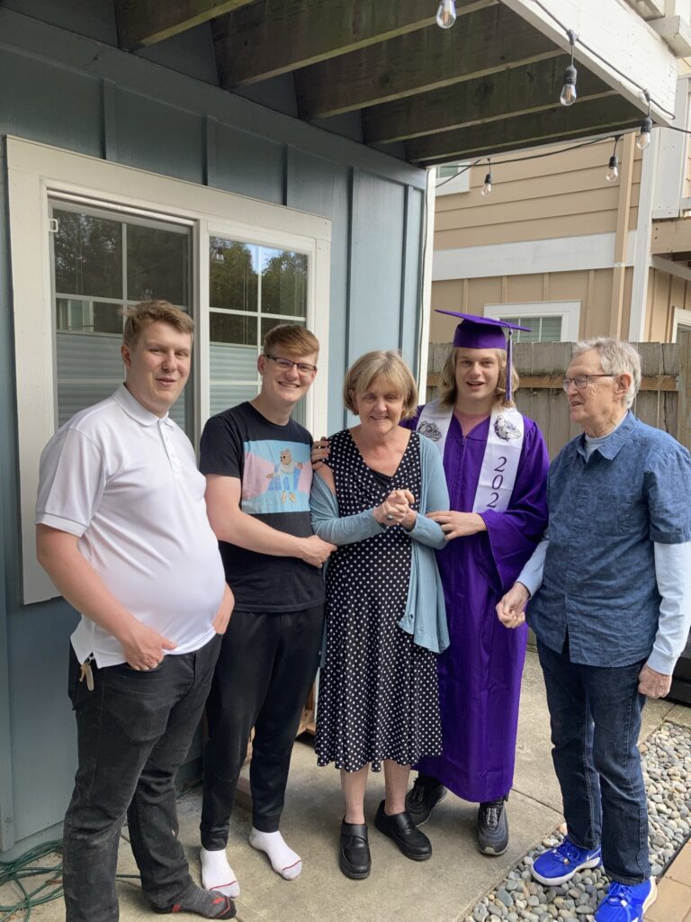 Lynne’s 3 sons visited last week. Christoph hadn’t visited in over a year. Like many, he couldn’t visit, wanted to, and then did. Did Lynne recognize him? Simon says, “Yes.” She said 2 syllables: “Chris – to.” Never give up.