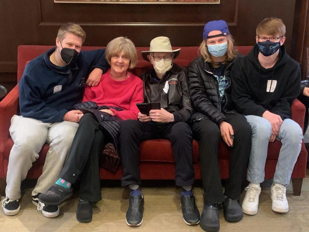 And as you can see, she enjoyed squeezing onto a couch between her sons and me. I take each visit as it is and am deeply thankful for all the visitors she receives