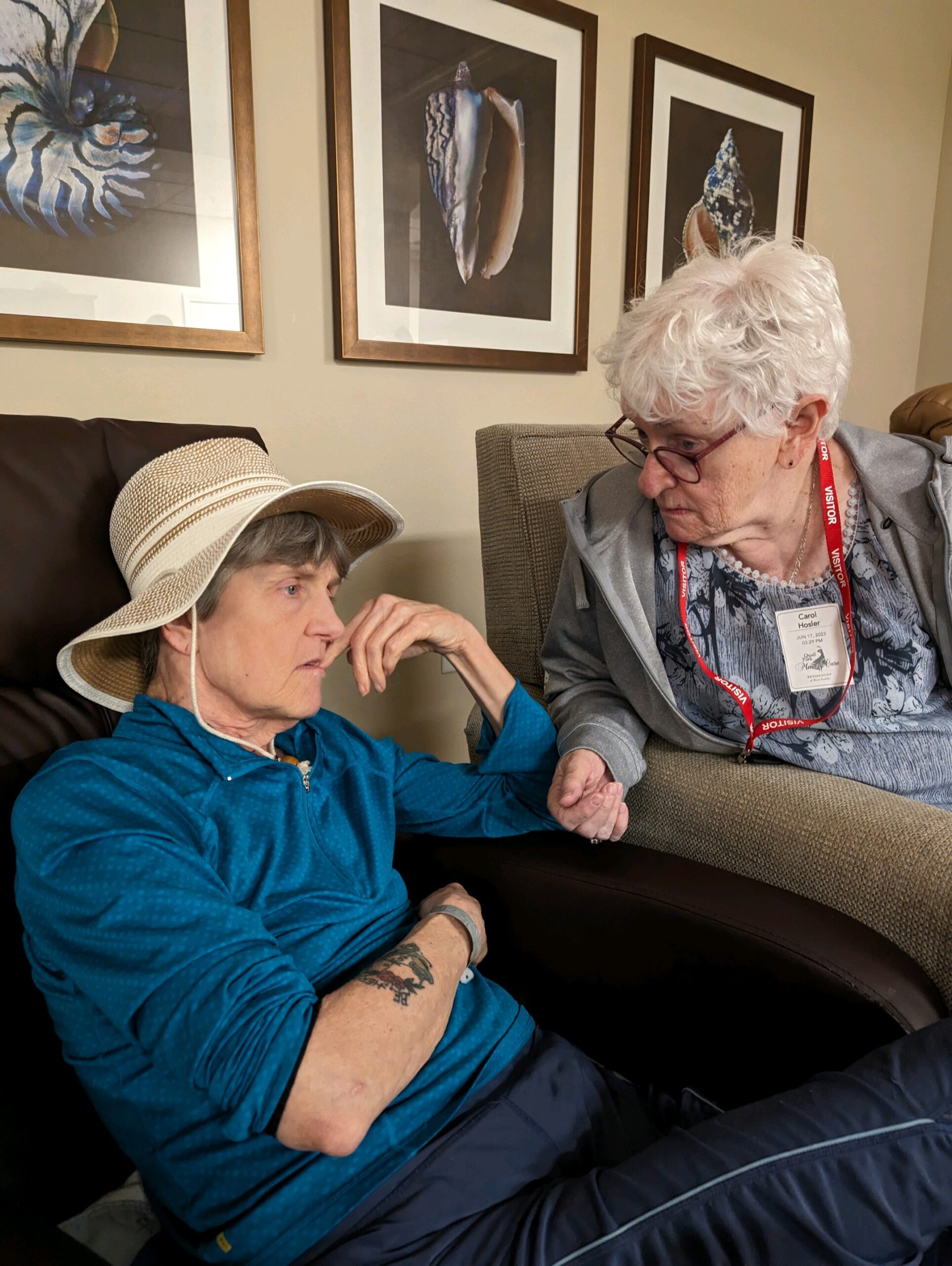 When Lynne angrily gestured again & said, “Get out of here!” Carol said, “You tell him, Lynne! Get thee behind me, Satan. I don’t believe in hell or Satan. I believe is God deeply loves you. Your Dad loves you. I love you. So many people love you.” She slowly calmed down.