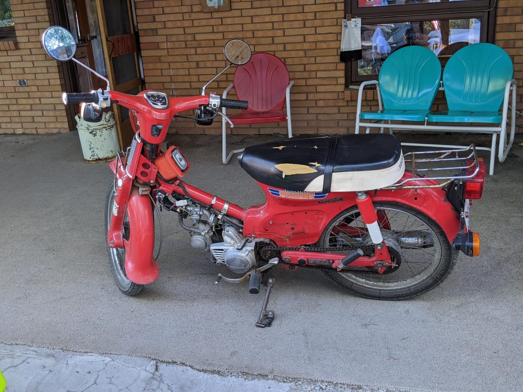 A friend sent me a link and said he thinks the scooter is a Honda CT90. Thanks, Chuck.