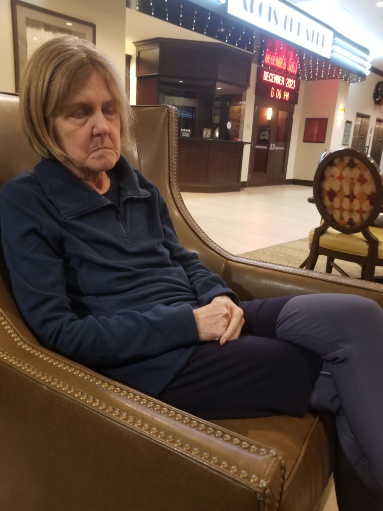 Finally, I turned her over to the nurse who said she had had a pretty good day, but she’d get her ready for bed. As I slipped out the door to the stairs, I heard her in the hallway sobbing and yelling, “What did I doooooo?”